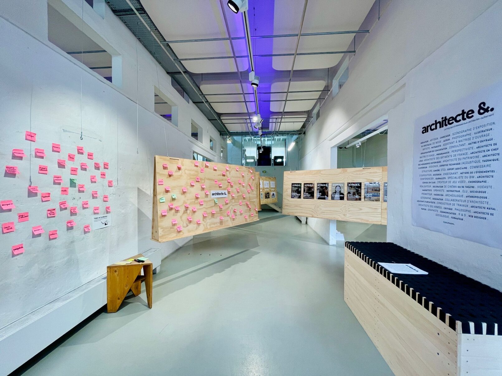 La soirée de vernissage a permis de lancer une discussion autour d’un feu de camp fictif entre les étudiants et l’Ordre des Architectes de Nouvelle-Aquitaine sur le port du titre, retransmise en direct sur mezzanine.archi. Avec les contributions de Marion Allam, Lou Mai Baudet, Alice Biarne, Emma Caradec, Lucie Collombo, Marie Dagorret, Éléa Datin, Jade Gardie, Élias Iguer, Cynthia Lamarre-Bourret, Chloé Monnot, Louka Peralta, Dai Pham, Éloïse Redon, Anouchka Sagaert, Tristan Turgné, Océane Vigier et Alyssa Vila ; en dialogue avec Franck Kaftan, Lila Derridj, Andrea Ho Posani, Sophie Guichard, Alexia Artagnan, Lauran Coornaert, Félix Roudier-Canler, Iris Roux-Pagès, Camille Chevalier, Agnès Clotis, Marine Billet, Cécile Gray, Cyril Chabaud, Jérémie Koempgen, Raphaël Guillemette, Gauthier Delvert, Laurence Auréjac, Lucas Bacle, Brann Le Garrec et Martin Étienne. Et la complicité de Marlène Prost, Adrien Maillard, Andrine Iratçabal, Sara Meunier et les équipes d’arc en rêve, Mélanie Darroman, Fanny Gerbeaud, le collectif Cancan, Vincent Arné, Virigine Gravière, Lucile Bories, Boris Delafoulhouze, David Vernet, Nicolas Merlo et Alice Platriez.