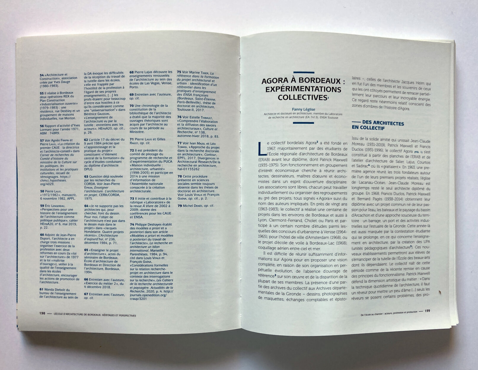 Ce livre éclaire l’histoire de l’école d’architecture de Bordeaux, son rayonnement, la trajectoire de ses acteurs et les contextes d’enseignement en rassemblant des sources et matériaux inédits. L’article revient sur les expérimentations collectives d’Agora, groupement d’architectes diplômés de l’école. L’œuvre construite par ses membres témoigne d’une prise de distance avec l’enseignement reçu et d’une prise de position écologique et sociale singulière.