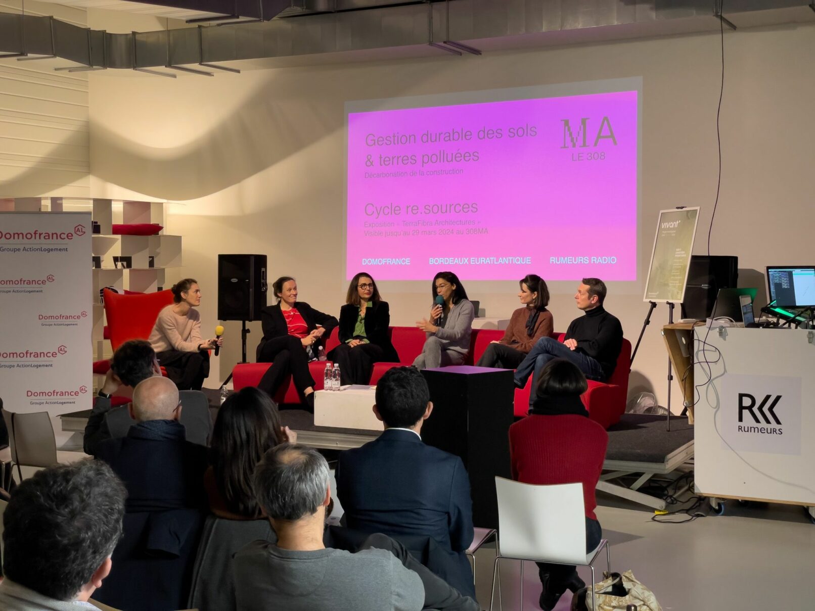 Programmée le 18 janvier 2024, cette table-ronde, retransmise en direct sur mezzanine.archi abordait la gestion des sols et des terres polluées en comparant les études de cas de La Jallère et de Bordeaux Garonne-Eiffel-La Souys. Avec Anne Fraisse, directrice générale d’Urbain des bois, Marie Huguet, directrice de l’aménagement et du renouvellement urbain de Domofrance, Pauline Pradel, chargée de mission développement durable et Christophe Hans, chef de projet, tous deux pour le compte de Bordeaux Euratlantique et la paysagiste Lina Singer, invitée en tant que grand témoin.